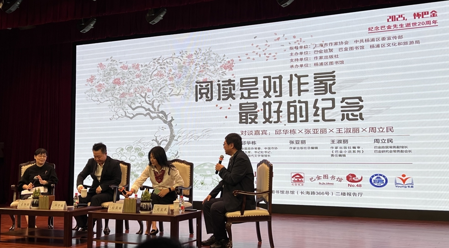 中国作协副主席、中国现代文学馆馆长邱华栋与作家出版社总编辑张亚丽、《巴金小说系列》责任编辑王淑丽、巴金故居常务副馆长周立民围绕《巴金小说系列》展开对谈。